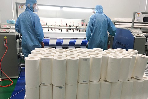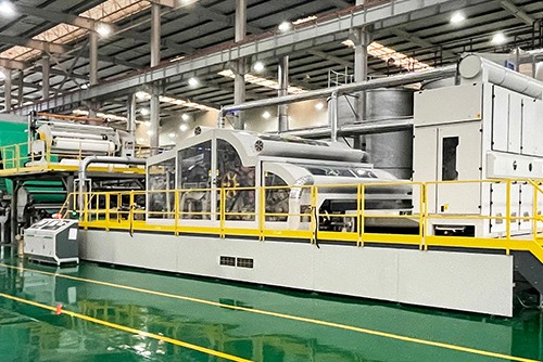 建有福建省、廣東省內(nèi)唯一一條三位一體濕法水刺新材料生產(chǎn)線,生產(chǎn)中實(shí)行循環(huán)利用、實(shí)現(xiàn)零污水排放,配套高速度、高產(chǎn)量、高質(zhì)量梳理機(jī)和復(fù)合圓籠除塵機(jī)組等設(shè)備,采取“一站式”“一鍵式”全流程自動(dòng)化生產(chǎn)。